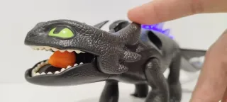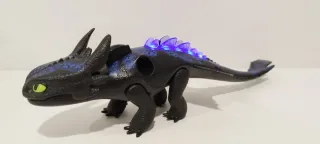Figura de dragón de Playmobil inspirada en Cómo entrenar a tu dragón. - Diseño detallado en color negro con detalles azules. - Crestas dorsales translúcidas con iluminación LED azul. Incluye pila. - Dispara proyectil al abrir la boca. - Ojos verdes brillantes. - Le faltan las alas. Guerra, guerreros, medieval, castillo, mazmorra, fortaleza, lucha, despiece.