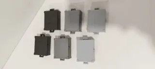 Conjunto de seis maletines de Playmobil en diferentes tonos de gris. Ideales para coleccionistas o para añadir a tus dioramas. - Seis maletines incluidos. - Diseño clásico de Playmobil. - Tonos de gris variados. - Maletin, maleta, caja, despiece, piezas.
