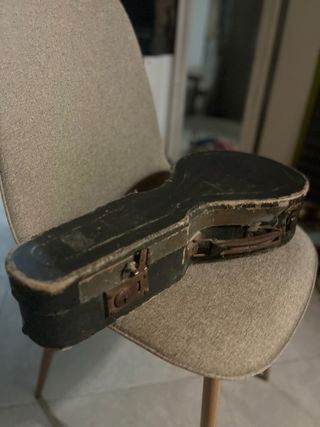 Estuche rígido vintage para guitarra. Estado usado, con desgaste visible por el tiempo (ver fotos): – interior original – cierres y bisagras antiguos – ideal para restauración, proyecto DIY o decoración Se vende tal cual aparece en las fotos. No es nuevo. .