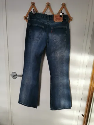 Pantalón vaquero de corte acampanado. - Diseño desgastado. - Cierre de cremallera y botón. - Bolsillos delanteros y traseros.