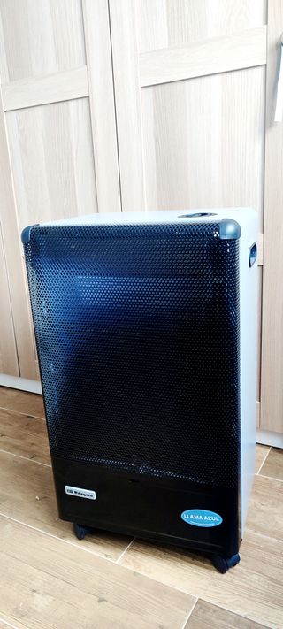 Estufa de gas de interior con sistema de seguridad. - Potencia máxima de 4,2 kW. - Triple sistema de seguridad. - Diseño en color negro y azul.