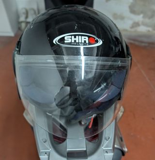Casco jet Shiro SH60 en talla L. cierre milimétrico modelo Manhattan - Color negro brillante. - Visera transparente. -