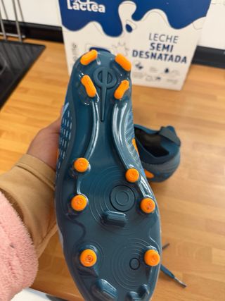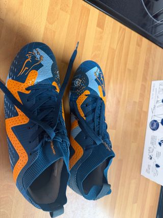 Zapatillas de fútbol nuevas con un diseño llamativo. - Color azul y naranja. - Talla 37 - Cierre con cordones.