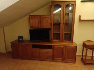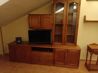 Mueble de salón madera y cristal
