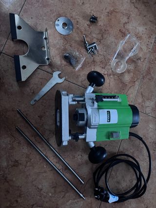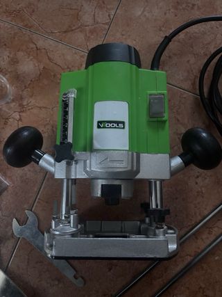 Fresadora VTOOLS de 1020W con accesorios. - Incluye guía, llave y protector de plástico. - Cable de alimentación. - Casquillos para diferentes fresas. - Com todos sus accesorios. - Tiene solomun uso y funciona perfectamente.