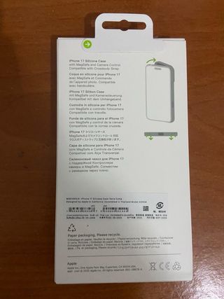 Funda de silicona para iPhone 17. - Color marrón. - Compatible con MagSafe. - Incluye control de cámara.