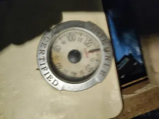 Balanza antigua con esfera circular y marco metálico. - Esfera con números grabados. - Marco metálico con inscripciones. - Aguja indicadora.