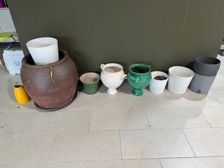 Lote de jarrones, macetas y jardineras grandes. Diferentes tamaños y estilos. Todo incluido en el mismo precio.