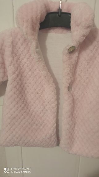 Se vende abrigo para bebé niña de 6 meses, en buen estado, color rosa claro.