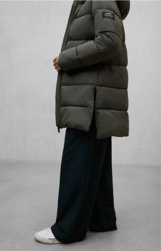 Abrigo modelo Marangu de Ecoalf en color verde oliva. Es una prenda cálida y con un diseño moderno. - Capucha integrada. - Cierre de cremallera. - Bolsillos laterales.