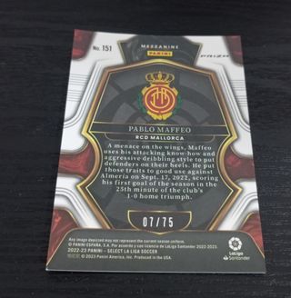 Tarjeta de colección Select La Liga 22-23 del jugador Pablo Maffeo del RCD Mallorca. Edición limitada a 75 . - Jugador: Pablo Maffeo - Equipo: RCD Mallorca - Temporada: 2022-2023 - Serie: Select la liga soccer - Limitada a 75 unidades