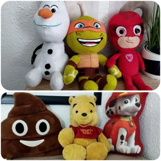 Tres peluches por 10€ Olaf Tortuga ninja Ululet de los Pjmask Emogy caca Winnie the Pooh Marshall de la patrulla canina Elige 3 por 10€
