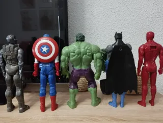 5 figuras de superhéroes, perfectas para coleccionistas o para jugar. Capitán América Hulk Iron Man, War Machine Batman. - Diseños detallados de cada personaje. - Fabricadas en plástico resistente. Lote 30€ o 10€ cada unidad