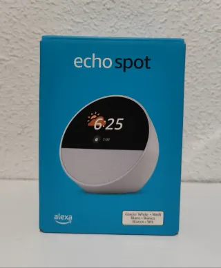 Dispositivo Echo Spot última generación con pantalla táctil y Alexa, color blanco. Caja precintada de fábrica, aparato a estrenar. * También disponibles en azul y en negro. Consolas, videojuegos usados, precintados, steelbooks y ediciones especiales en mi perfil. No negociable. No me desplazo. Envío a toda España, Portugal e Italia. altavoz inteligente despertador alarma el tiempo temporizador agenda Amazon music reproductor música radio termómetro glaciar white