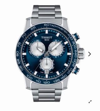 Reloj Tissot Supersport Chrono con esfera azul. - Bisel con taquímetro. - Tres subesferas. - Correa de acero inoxidable.
