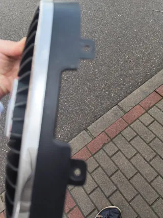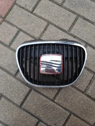 Rejilla frontal para Seat Ibiza modelo 6L. Pieza de recambio para el coche. - Diseño de panal de abeja. - Acabado cromado en el logo. - Marco exterior plateado. El borde rojo está algo desgastado.