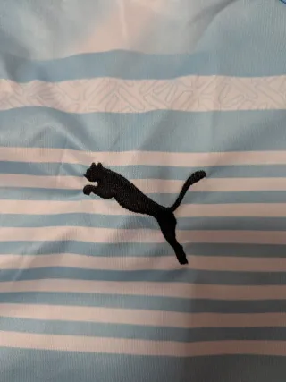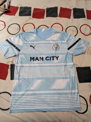 Camiseta de entrenamiento del Manchester City para la temporada 2023. -Talla L , está nueva sin usar , en perfecto estado - Diseño a rayas celestes y blancas. - Logo de Puma y escudo del club. - Detalles en negro en las mangas