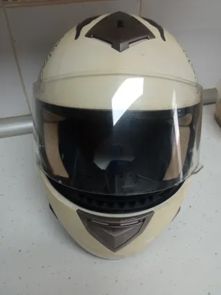 Casco de moto beige y negro