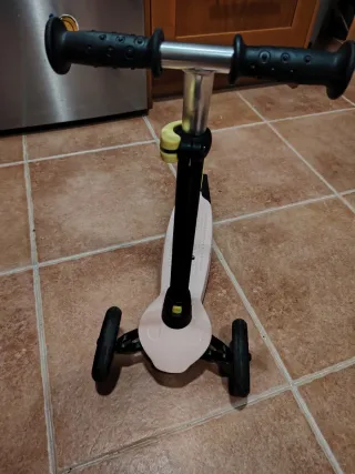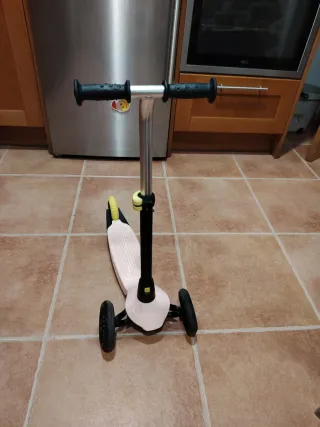 Patinete de tres ruedas en color rosa, diseñado para niños de 2 a 5 años. Es ligero y fácil de manejar. - Tres ruedas para mayor estabilidad. - Empuñaduras de goma para un agarre cómodo. - Plataforma antideslizante. - Freno atrás Prácticamente sin uso. Ha salido 3 veces de casa.