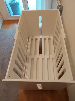 Estructura de cama con somier de láminas de madera. - Cabecero de madera con diseño curvo. - Base de somier metálica. - Láminas de madera para el soporte del colchón. Tengo dos iguales. Para más información escríbeme. PRECIO NEGOCIABLE